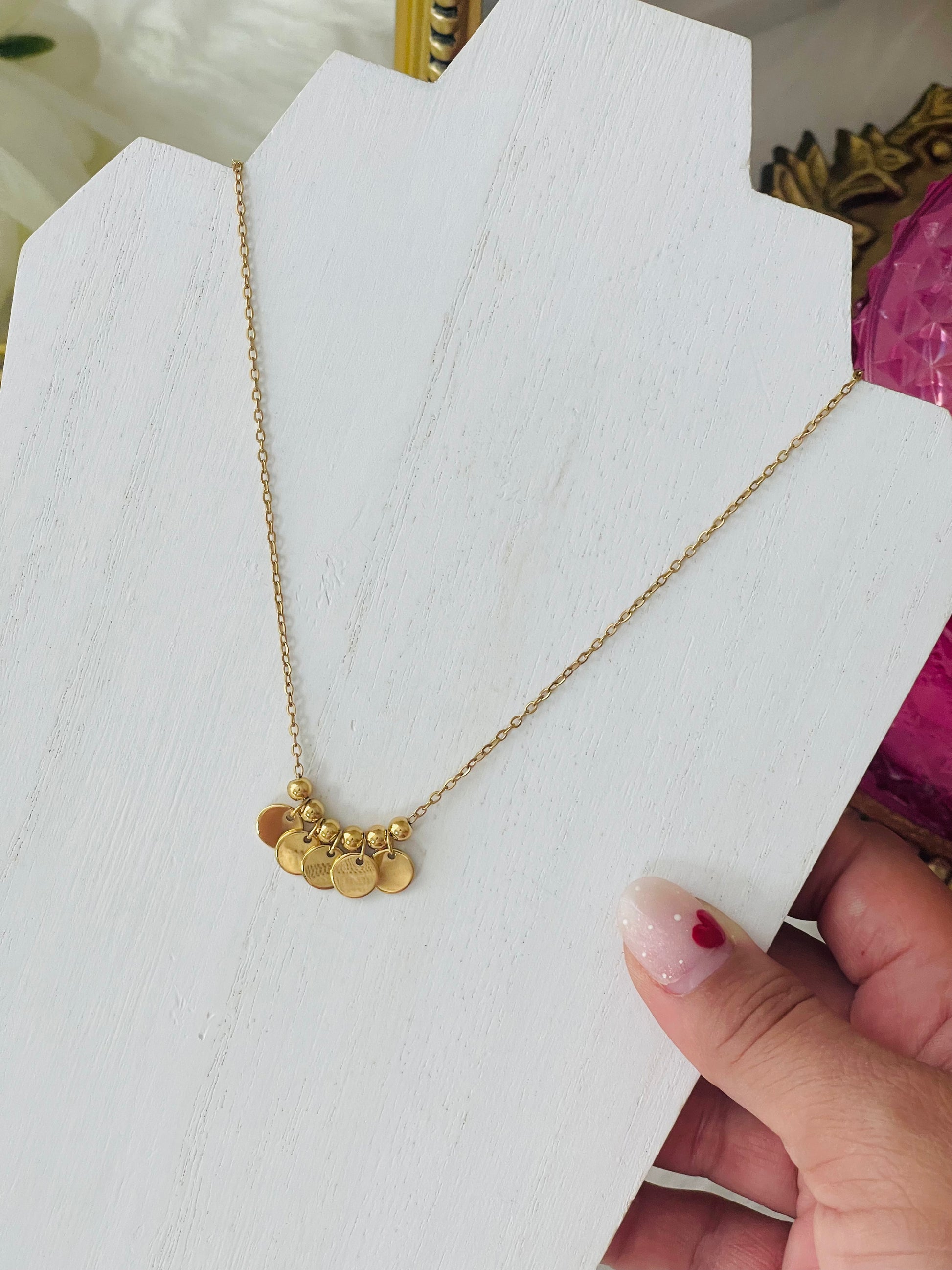 Hermoso collar de moneditas en stainless steel 316L. Super resistente al agua y a climas tropicales