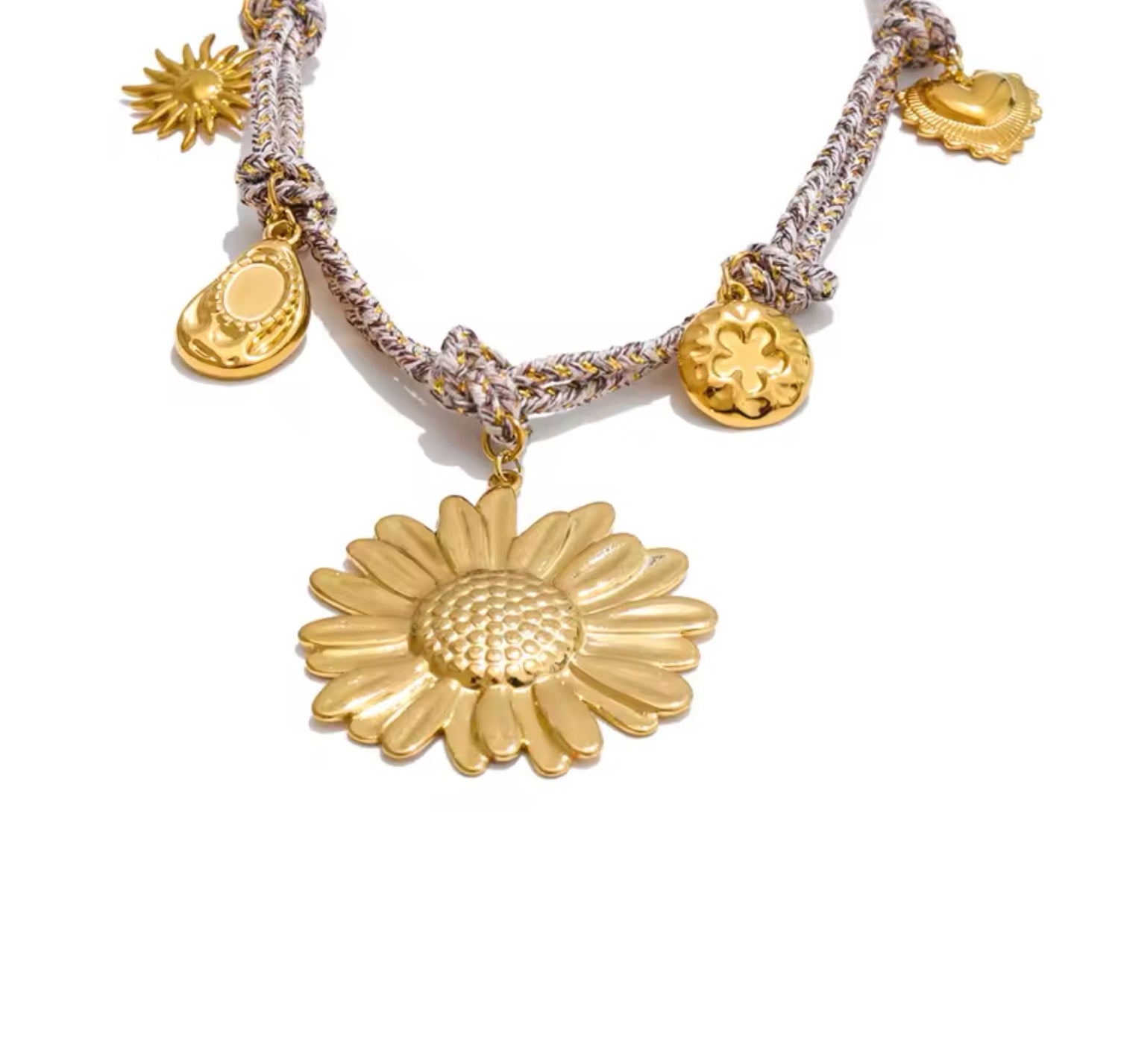 Cuerda trenzada con colgantes en acero inoxidable 18k